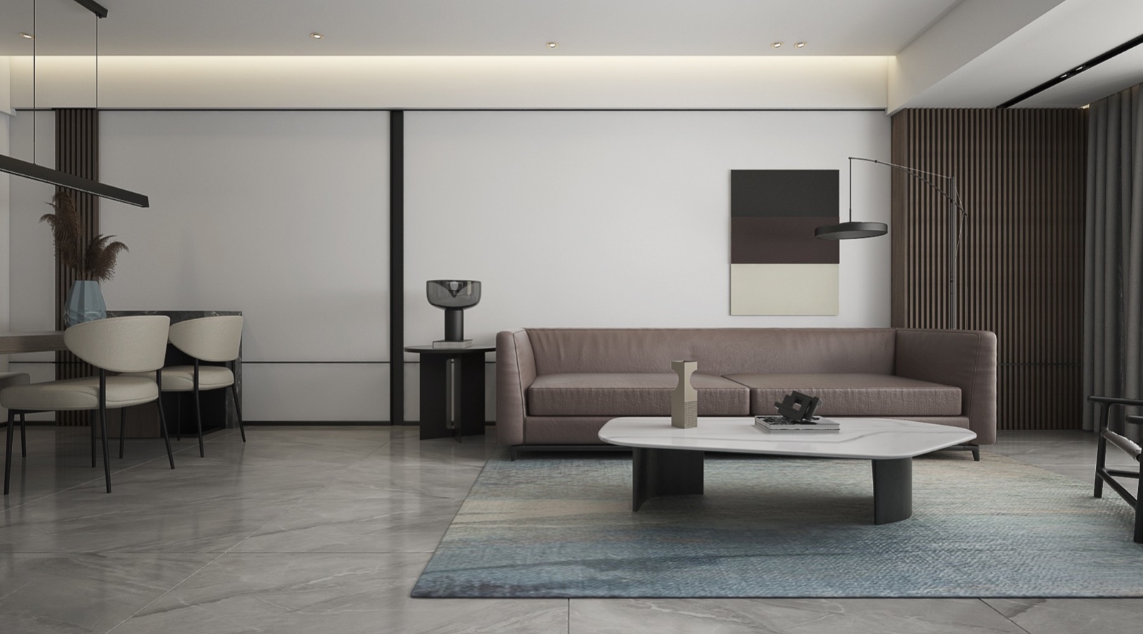 整体空间设计定位为现代风格,面对厚重的现代文明,设计师选择以现代的简明线条勾勒,打造非惯性法式居所,让现代法式新生。 入户玄关处,通透的玻璃屏风打造一个艺术小空间,主题颜色的不规则木艺勾勒出静止却灵动感的画面,桌子上的原版艺术家雕塑,椭圆的灯光,白色的瓷瓶与星点的小植被