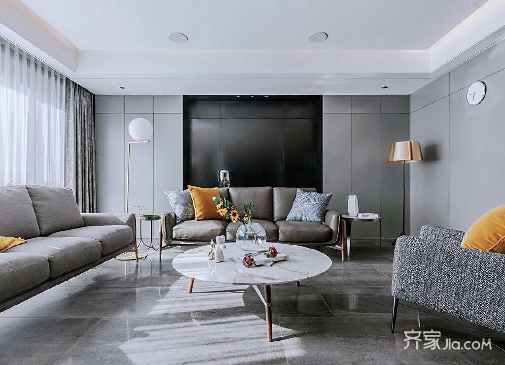 沙发背景通过简约的黑灰色搭配,简单中见格调。