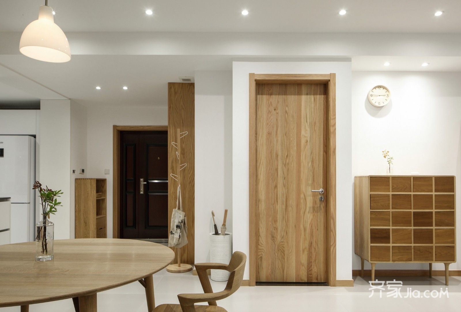 纯白的墙面在木色家具的衬托下显得格外宁静。