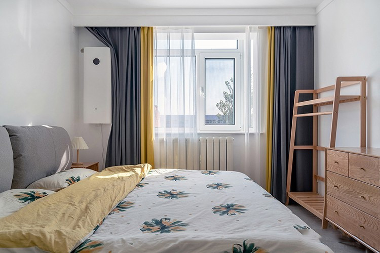主卧在床尾配备了一组五斗橱,以及挂衣架。五斗橱里可以摆放一些贴身衣物等,挂衣架则方便临时挂放。