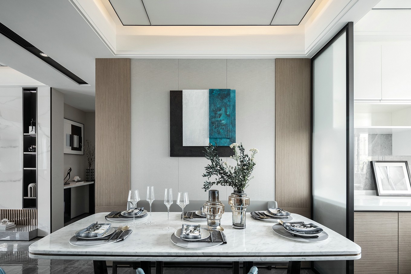 莫兰迪艺术特色是简单而朴素的,可以说,仅以一定比例的“灰”勾勒出优雅而***的质感。黑白灰的精准适配作为空间的主旋律,开启了***灰的格调。