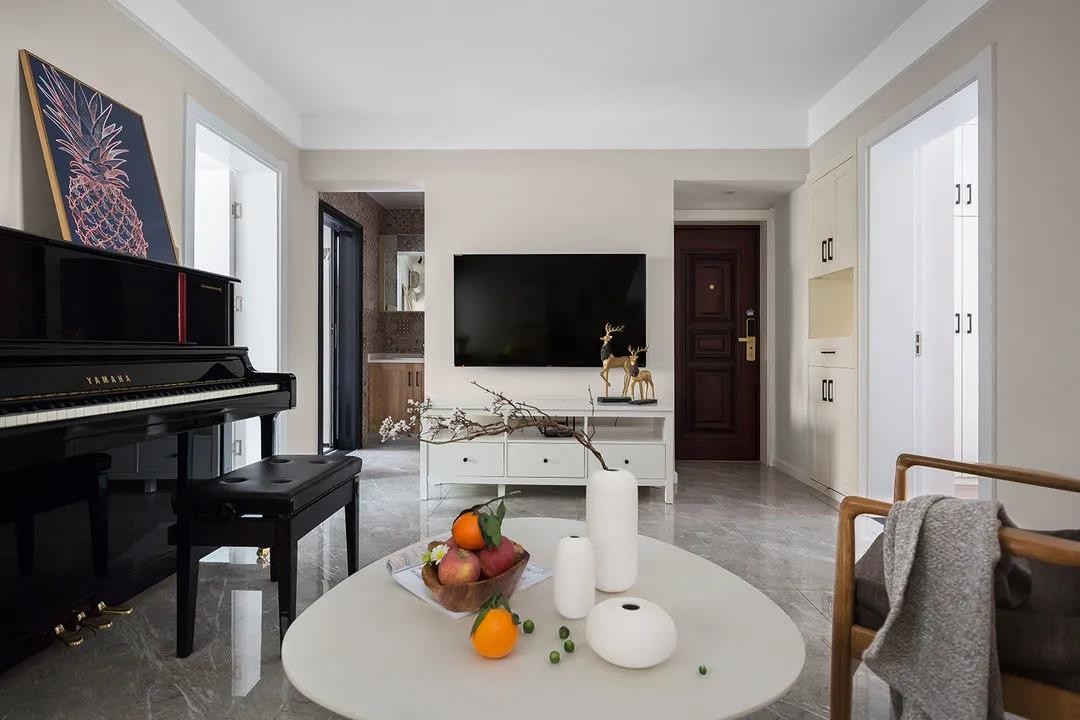 户型不大,没有独立玄关区域,开门见厅的格局。