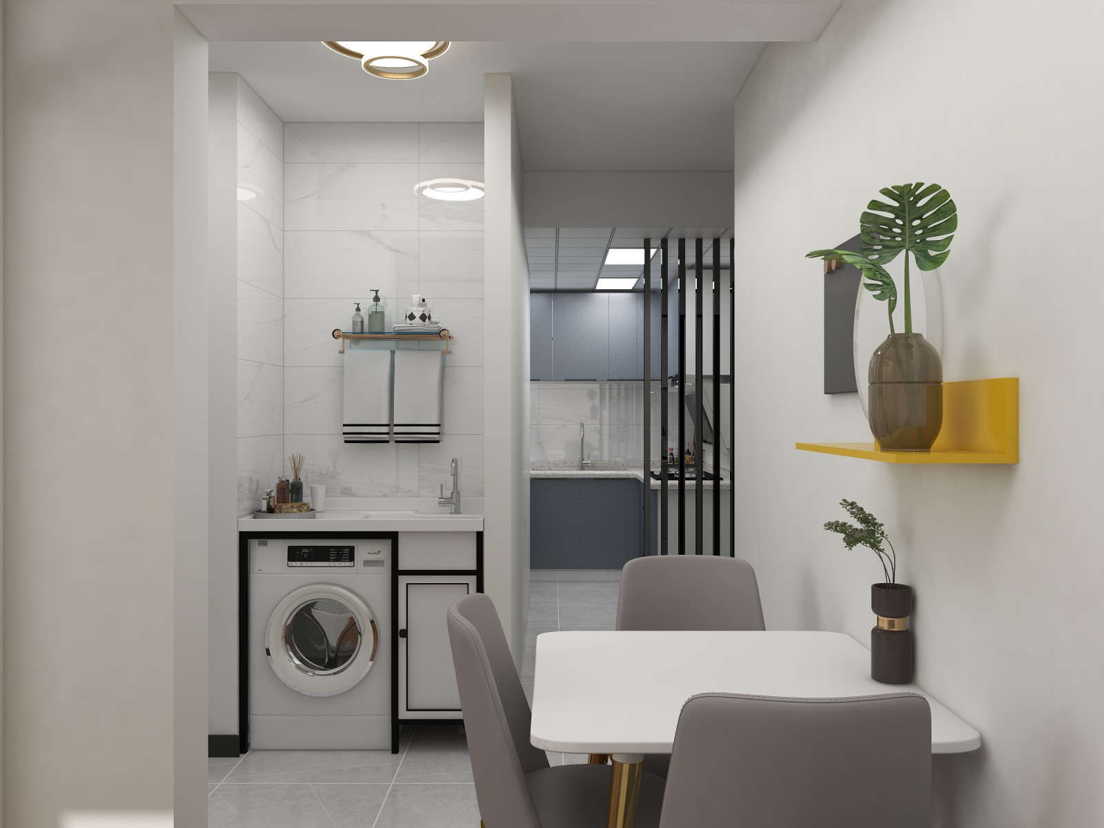 原本狭长的过道做干区