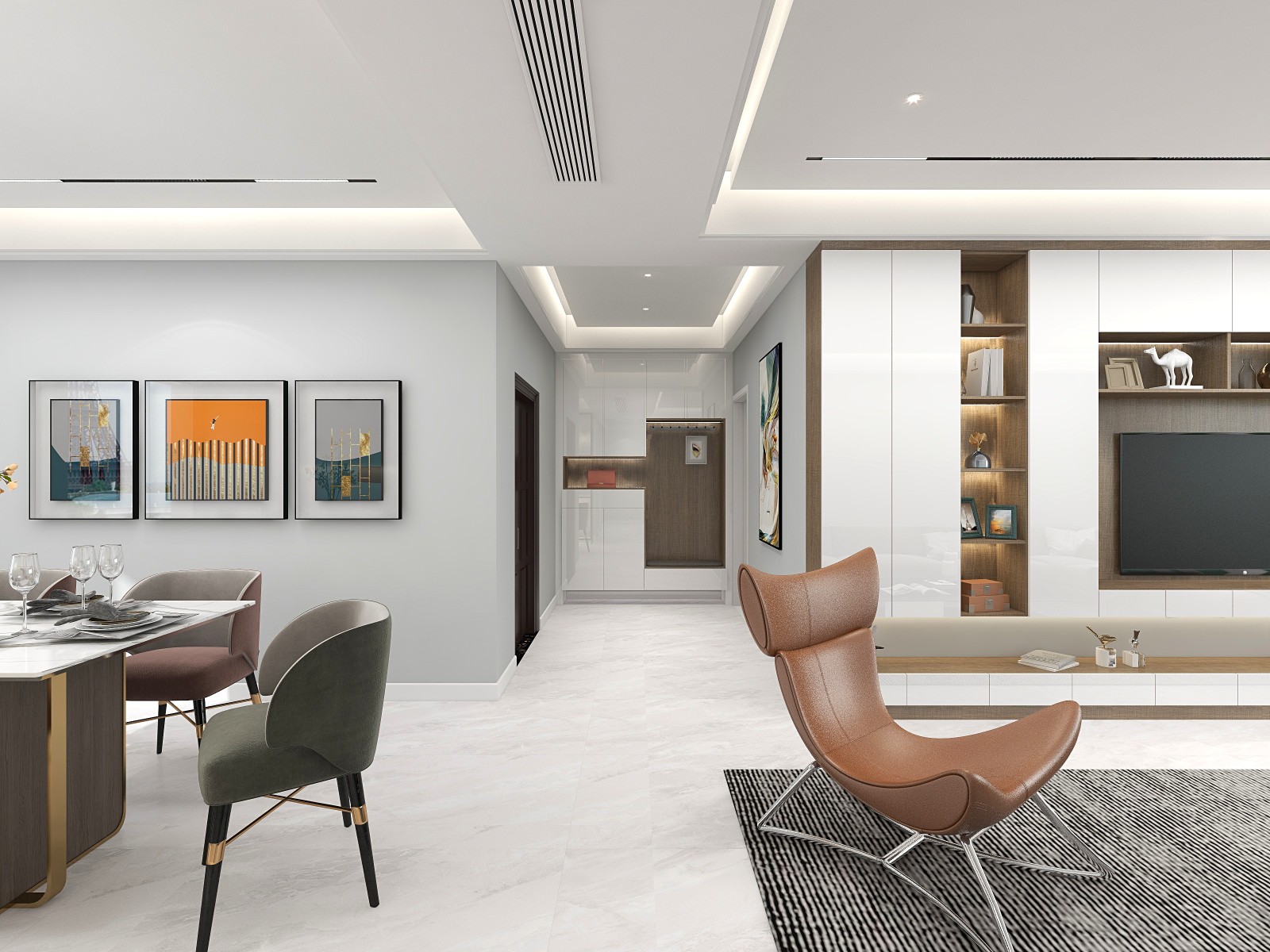 整个空间以浅色为主,没有过于华丽的色彩去渲染 ,也没有复杂的元素去堆砌,而是从细节展现简约而不简单的家居美,属实温暖,平凡又耐看。运用大量简洁的线条,石材的运用和无主灯的搭配营造出温暖干练的氛围。客餐厨一体化设计,合理利用空间,还增添了家人之间的互动性。