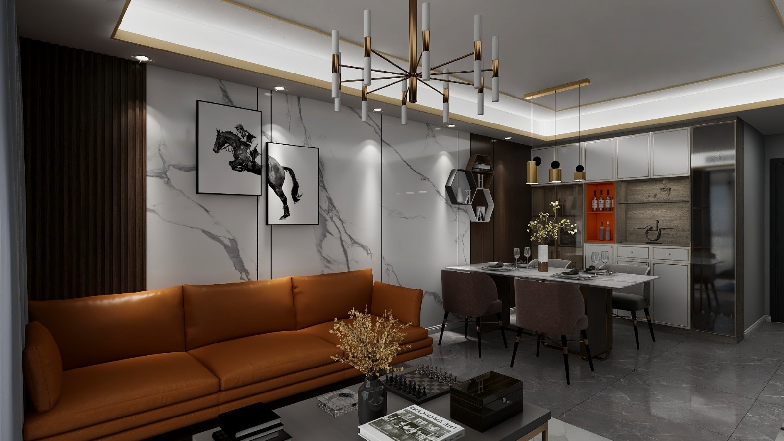 轻奢,大面积墙砖做背景墙