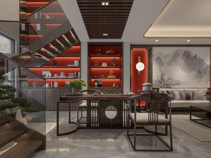 这是230平方的别墅 新中式风格