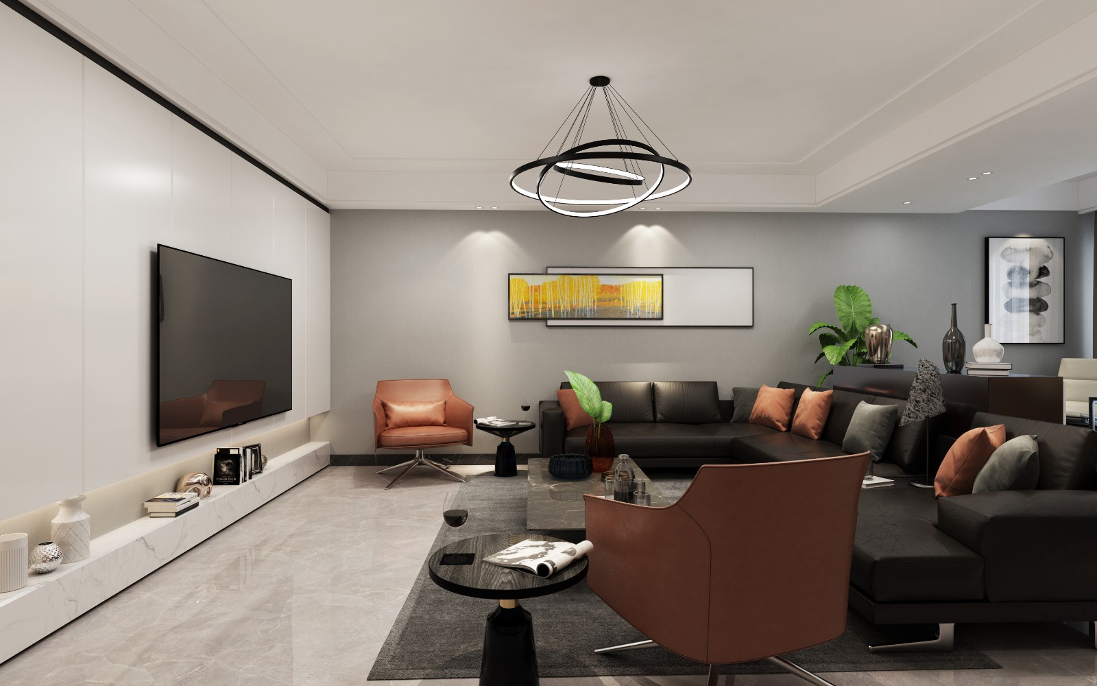 黑白的主色,是干净纯粹的色调,闲暇之时,靠在软体沙发上;随意团坐,只是放空发呆,也是一种浮生偷闲的舒畅;一边是宽敞包容的客厅,一边是餐厅,既自由开放又互相关联。