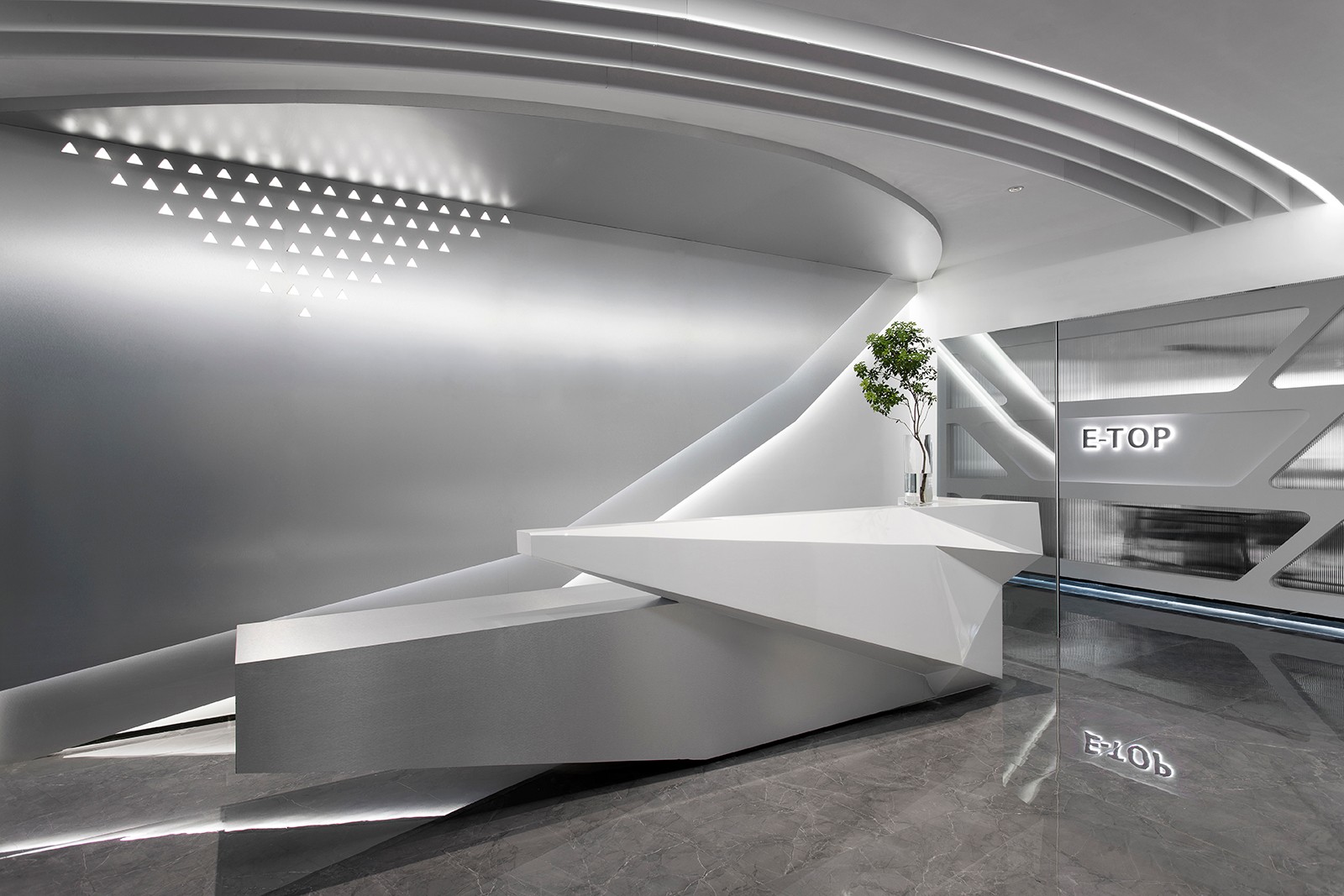 通过灯光、多维度科技元素等的共融,展现企业对科技与艺术融合的接纳与创新。