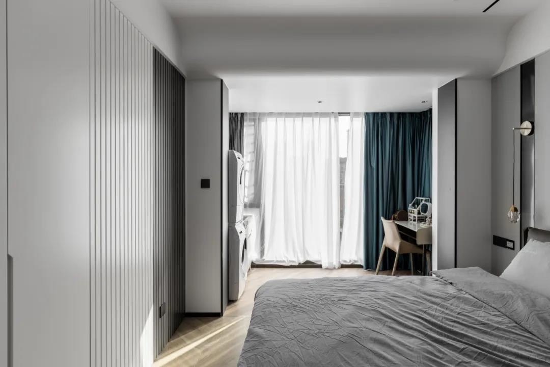 挤出一组实用衣柜,增加收纳, 床头背景墙与客厅沙发背景呼应
