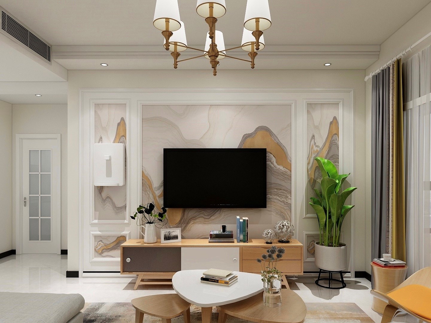 客厅空间的布置重点在于家具的选购与色彩以及布品的搭配,协调、对称的技巧,让每一个细节的铺排,都呈现出令人感觉舒适的气氛。