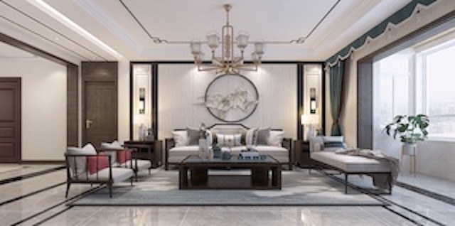 房子面积比较大,需要尽量显得大气、突出空间感。同时,两代人一起居住,在功能方面需要考虑周全。基于不同的生活经历、人生阅历,每位业主对于“家”都有自己的定义,大平层有着得天独厚的优势,更开放的空间感、更融合的功能区、更和谐的家庭生活空间,用新中式家具和专属订制而成的灯饰和装饰构件阐释当代空间语汇,整体呈现东方典雅、时尚的空间氛围,为居者带来返璞归真的高端、雅致体验。以水墨丹青融入现代家具设计 ,将中