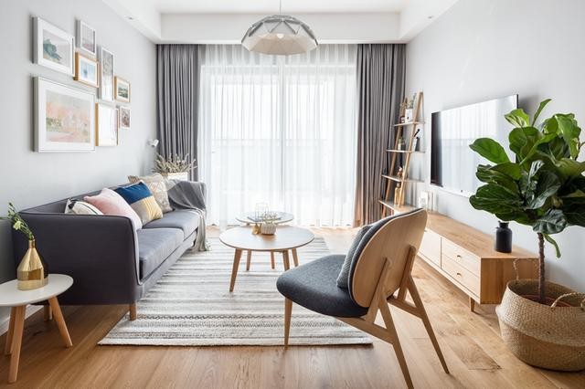 99平米的三居一厅,现代简约风格,面积虽不大,但户型方正,各空间的采光布局都很好,客厅很宽敞,氛围各方面很好。