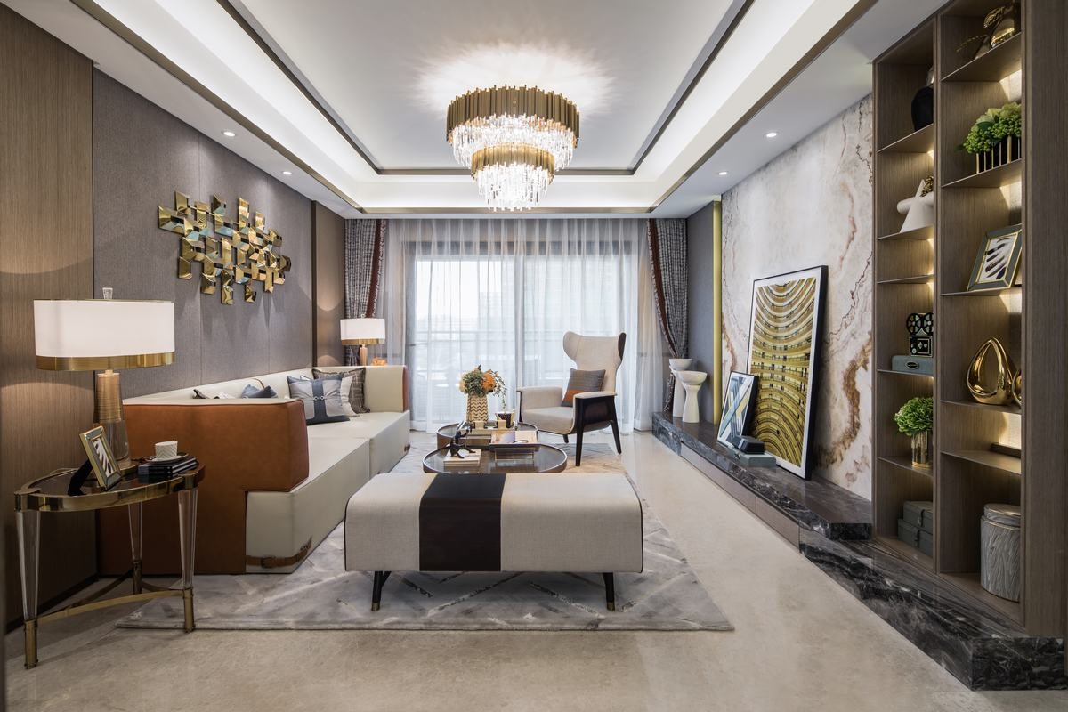 客厅用简约的沙发搭配大理石背景板,让整个空间质感满满。