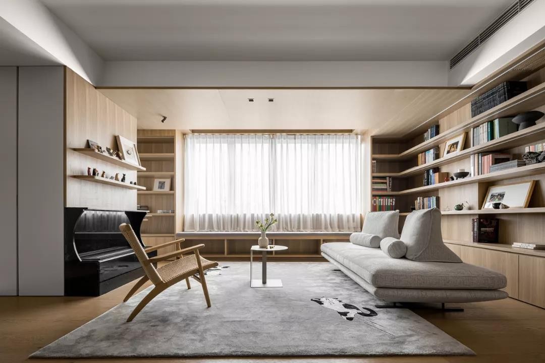 在整个空间中,设置了多样的书架用以承载业主一家大量的书籍,它们分别散落于空间的各个区域。 陈列出来后呈现一种闲适的美感,方便随时取阅的同时也变成家里一道美好风景。