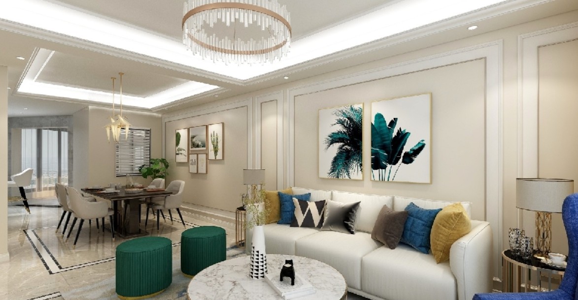 客厅选用跳色搭配,清幽,雅致;