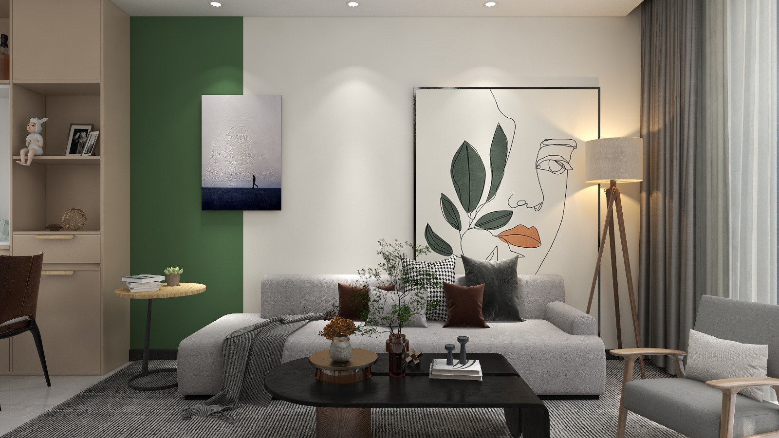简洁温馨,浅灰色和黄色搭配,绿色点缀