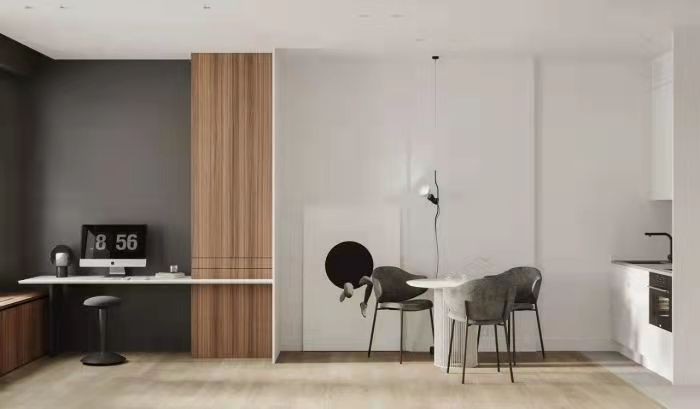 这间公寓***的特点是把床隐藏在衣柜里,和其他收纳柜形成一体,释放大量空间,看起来不会那么狭窄。