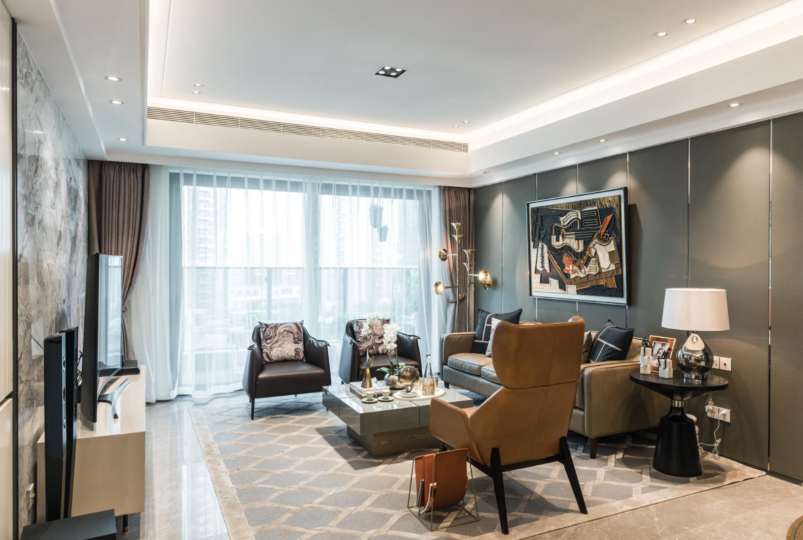 无主灯的设计让空间的光源环境更加温馨均匀,宽大的落地窗更显空间的明亮。