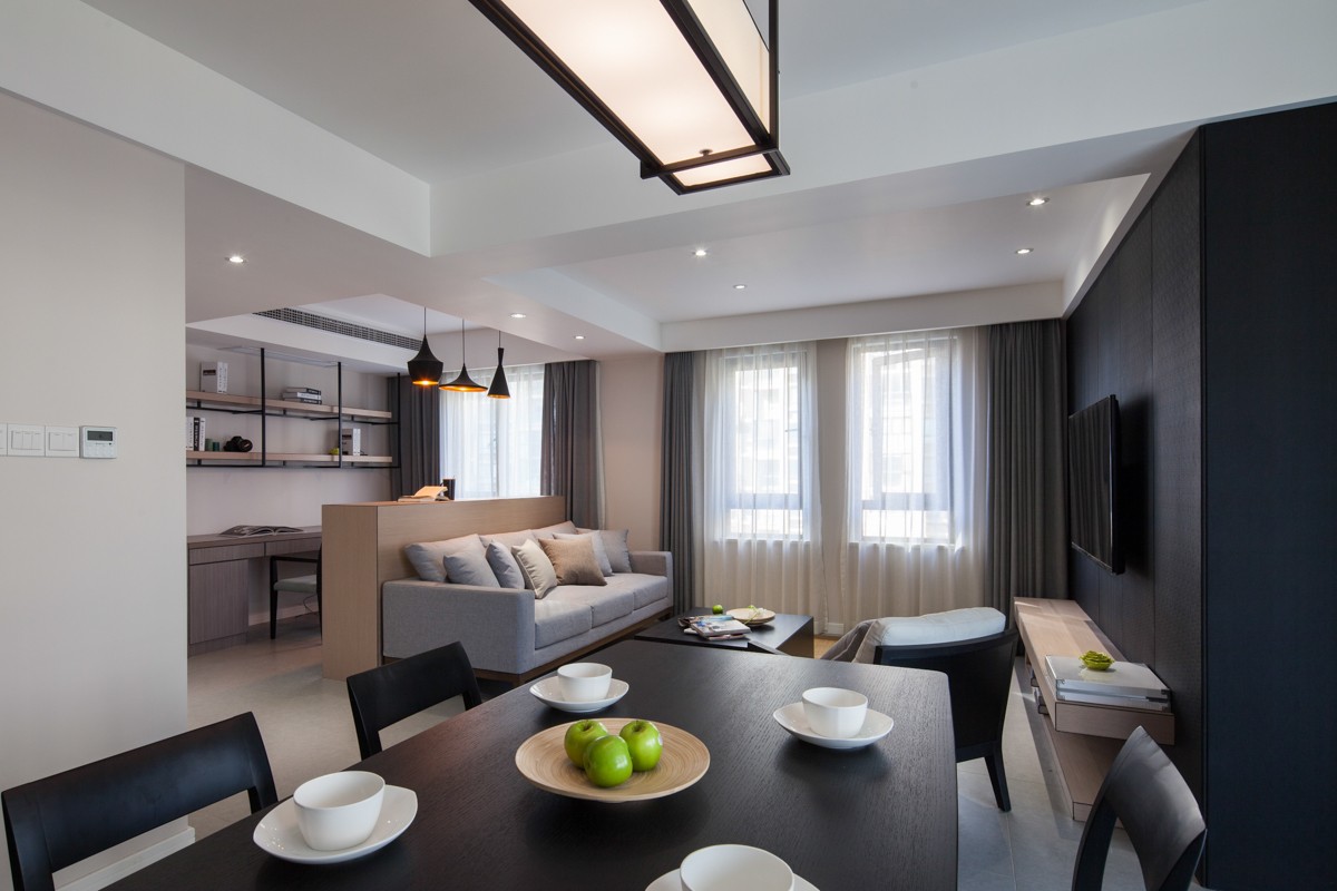 横厅的户型,但沙发后面不是餐桌。而是书桌。让生活更加精致