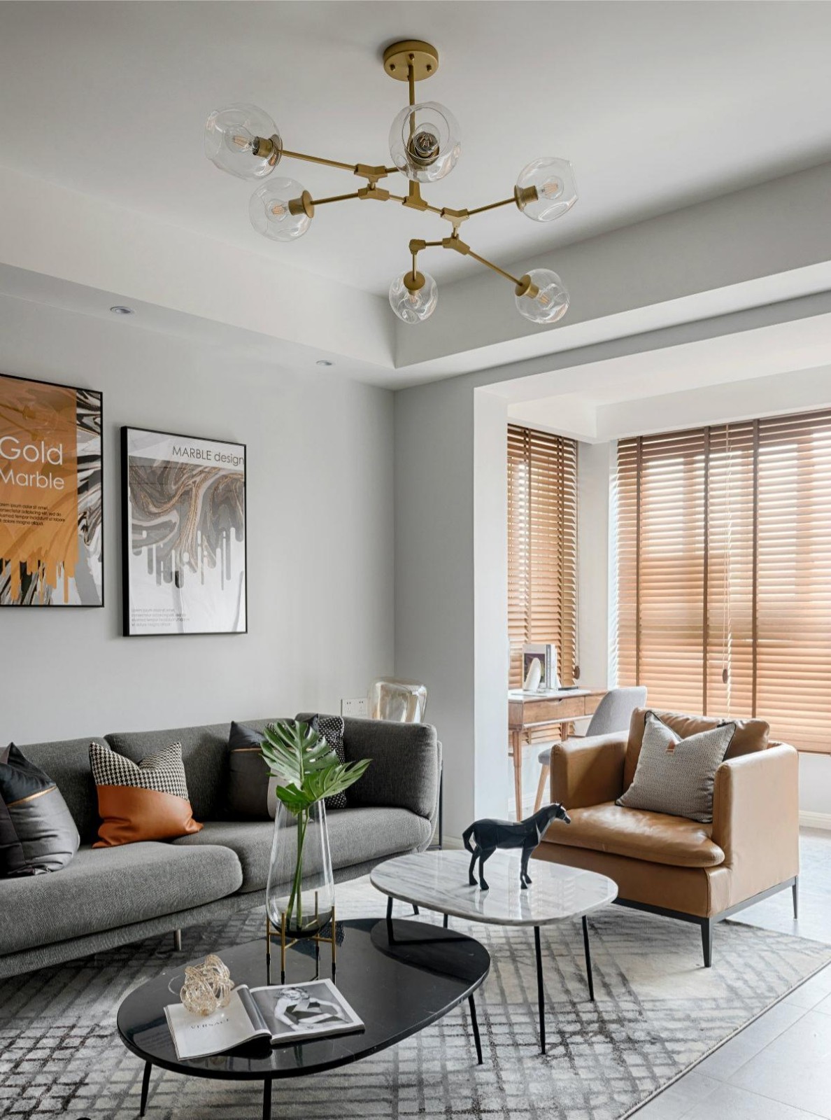 简约沉稳的家饰,搭配大理石,并通过简洁***灯光设计,晕染出高雅、精致的生活空间。 家具的搭配上呼应空间的色彩调性