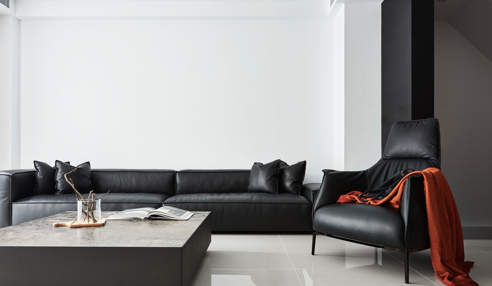 省去瑰丽繁复的雕琢,在单一冷质的界面上衍生,极简的纯净中,不着痕迹地让材料本身展现原本的风貌和触感。