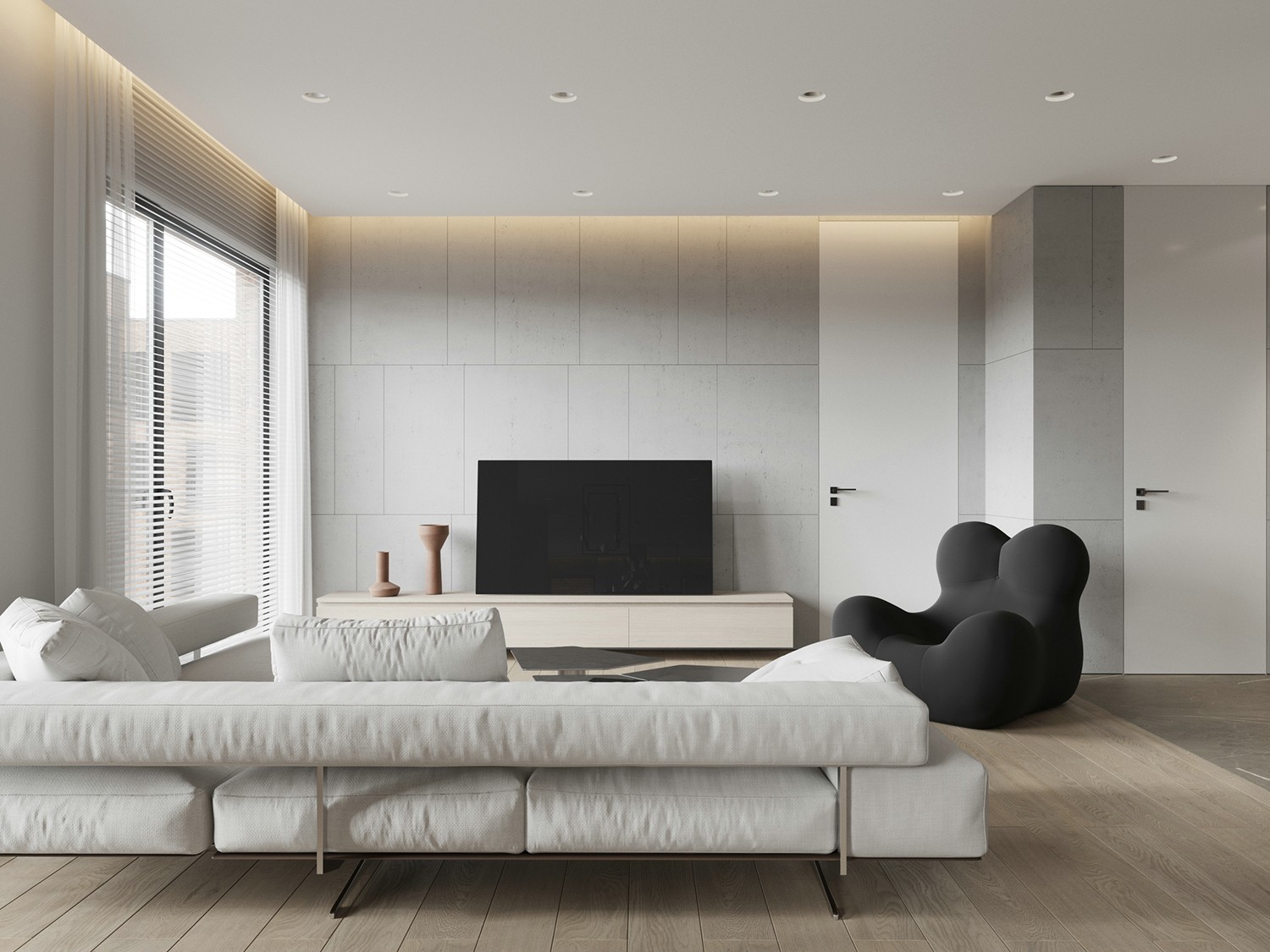 营造家人的亲近空间,让客厅中变得多元,丰富且充满戏剧性,并结合木皮的温润与水泥的质朴,烘托出素雅的空间气氛,给予人心境的安定与富足。