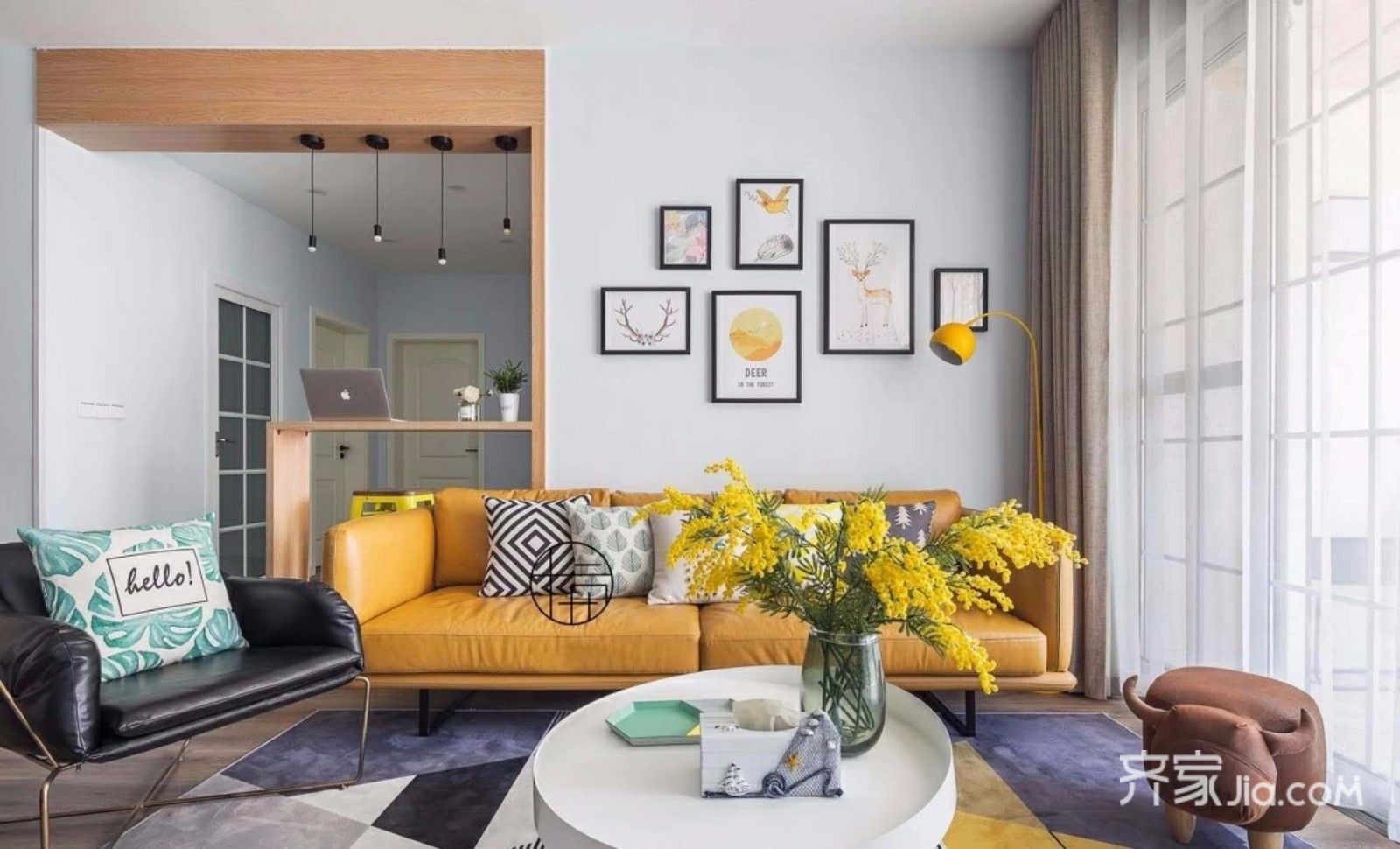 清浅干净的硬装搭配跳跃暖色软装,公领域空间充满活力。