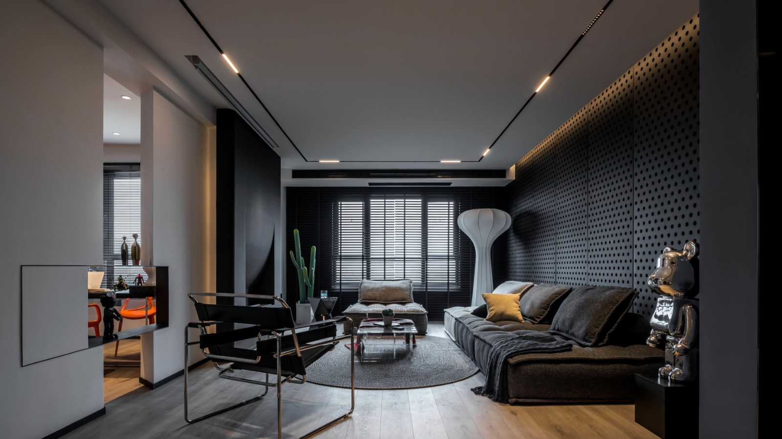 沙发墙的材质,赋予黑色别样的魅力。
