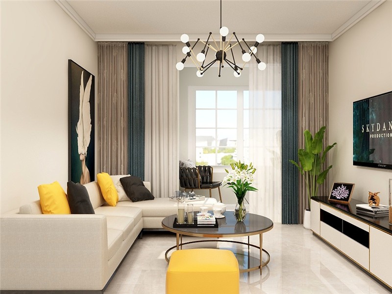 设计线条简约流畅,家具色彩对比强烈