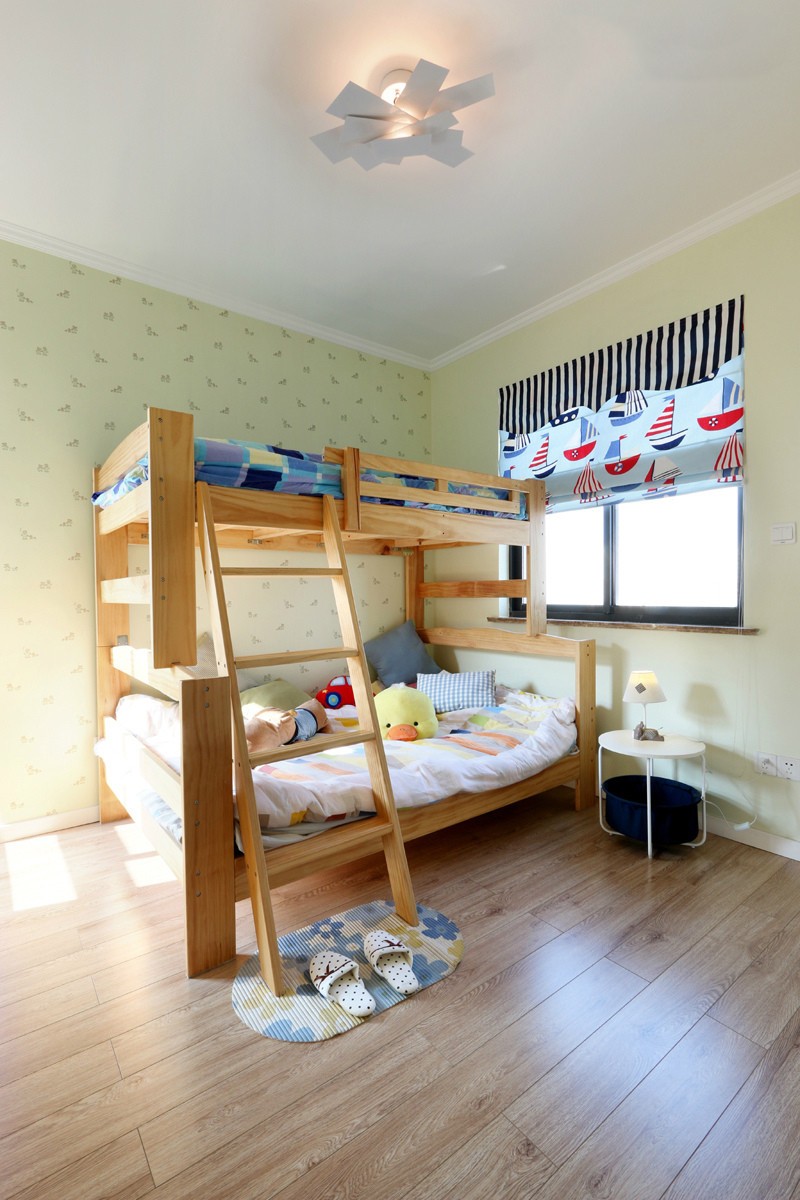 儿童房突出强调功能性设计,设计简约流畅,家具色彩对比强烈