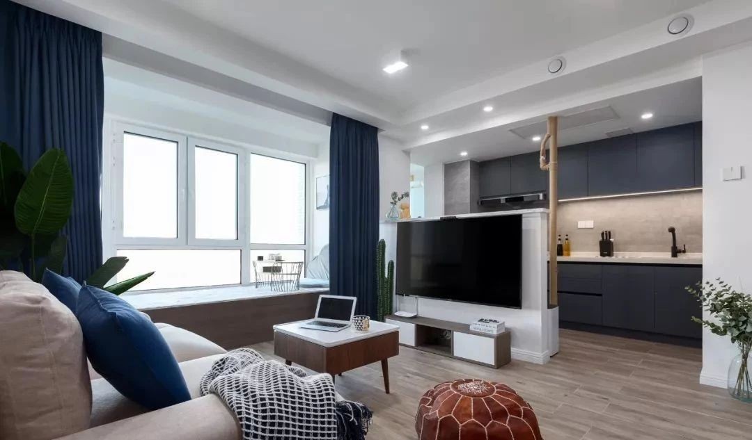 本案是一套面积仅为68平米的一居室小户型,为满足一家三口的居住需求,将一居改造成两居。根据业主的喜好,将风格定为现代风,色彩上,合理的加入了一些蓝色元素,让整个空间更有腔调。