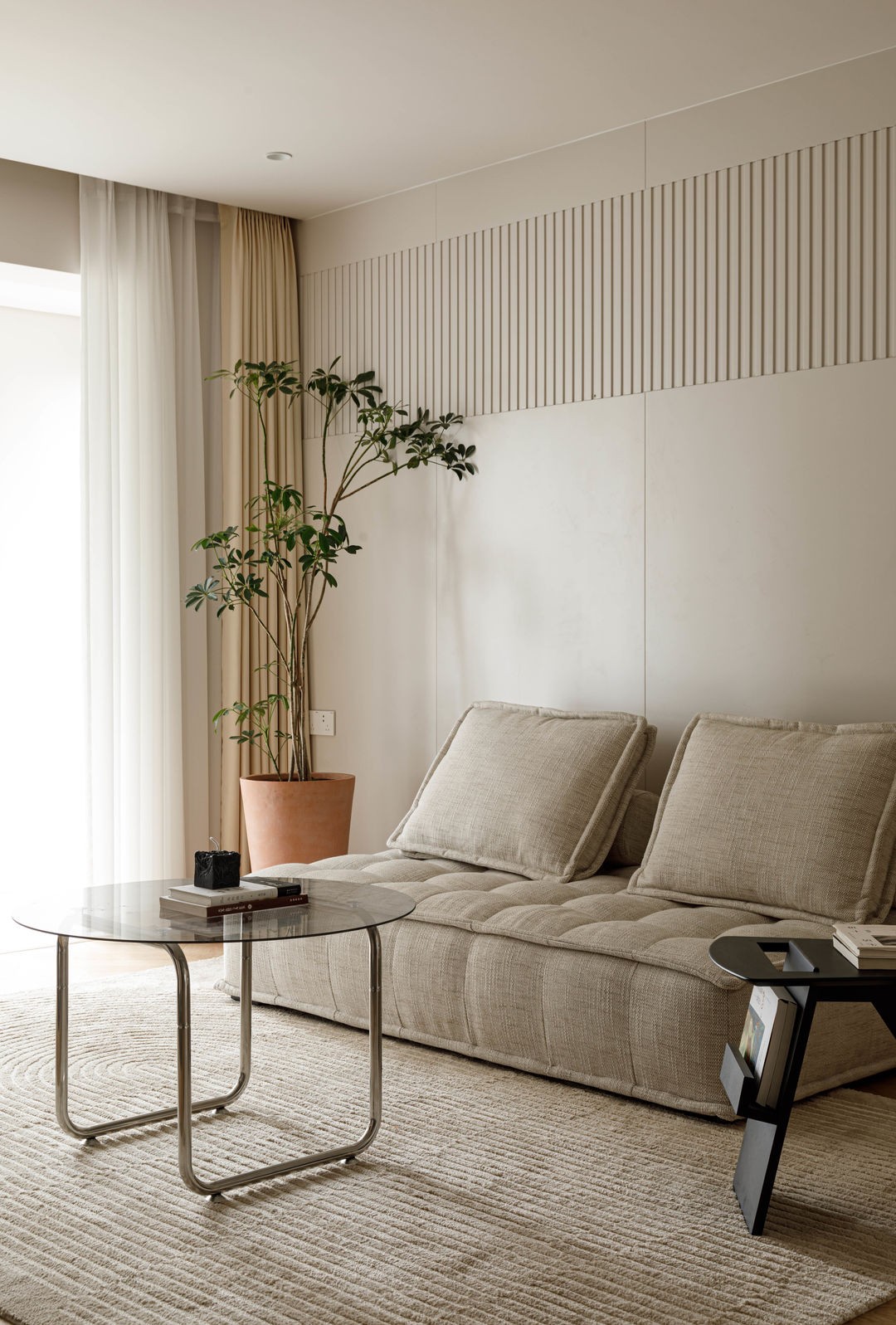 沙发和茶几都选择经典款,有点玻璃和金属元素也能显得更精致。