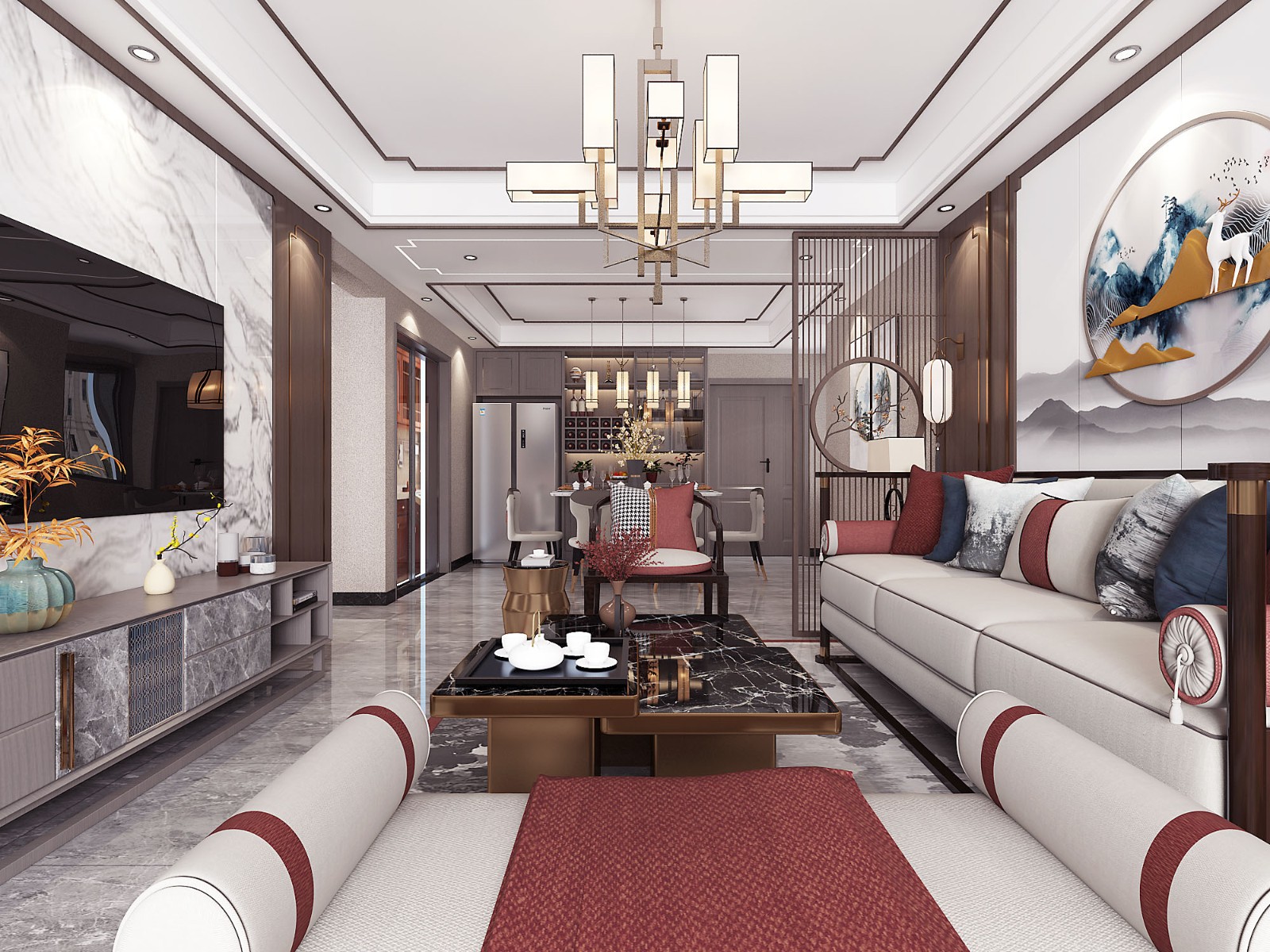 从沙发背景墙看向电视背景墙