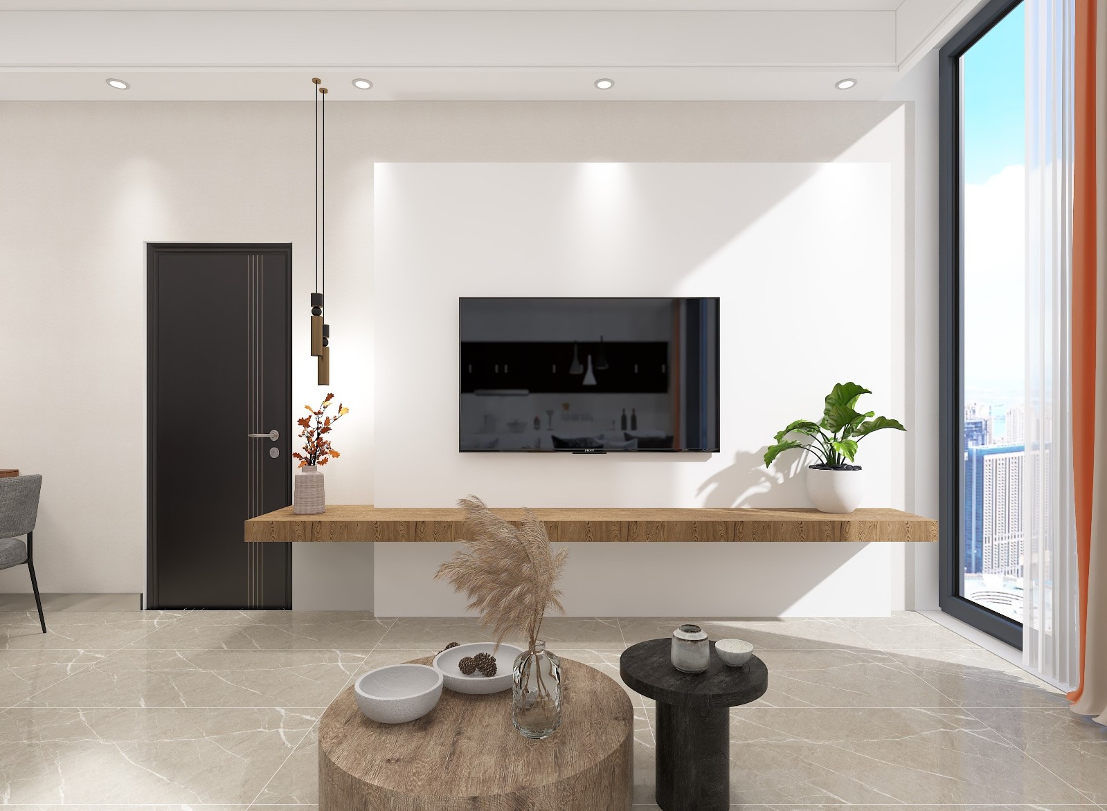 无主灯的设计趋势一直在蔓延,简约整洁的顶部设计与极简空间不谋而合。相比华丽的水晶灯,更显空间的大气感,同时满足室内照明需求和灯光效果。