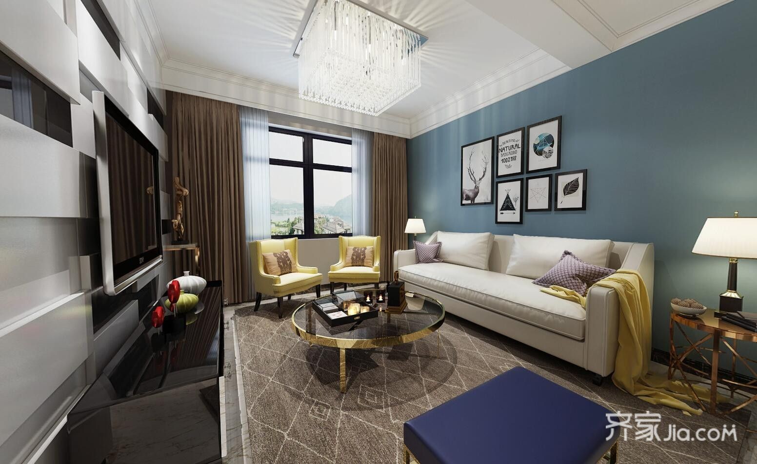 客厅区域 象征着自然与生机,虽是冷色系, 却能给人温暖的感觉。整个空间没有过多的家具与摆设, 满足功能的同时,***增加空间感与舒适度。