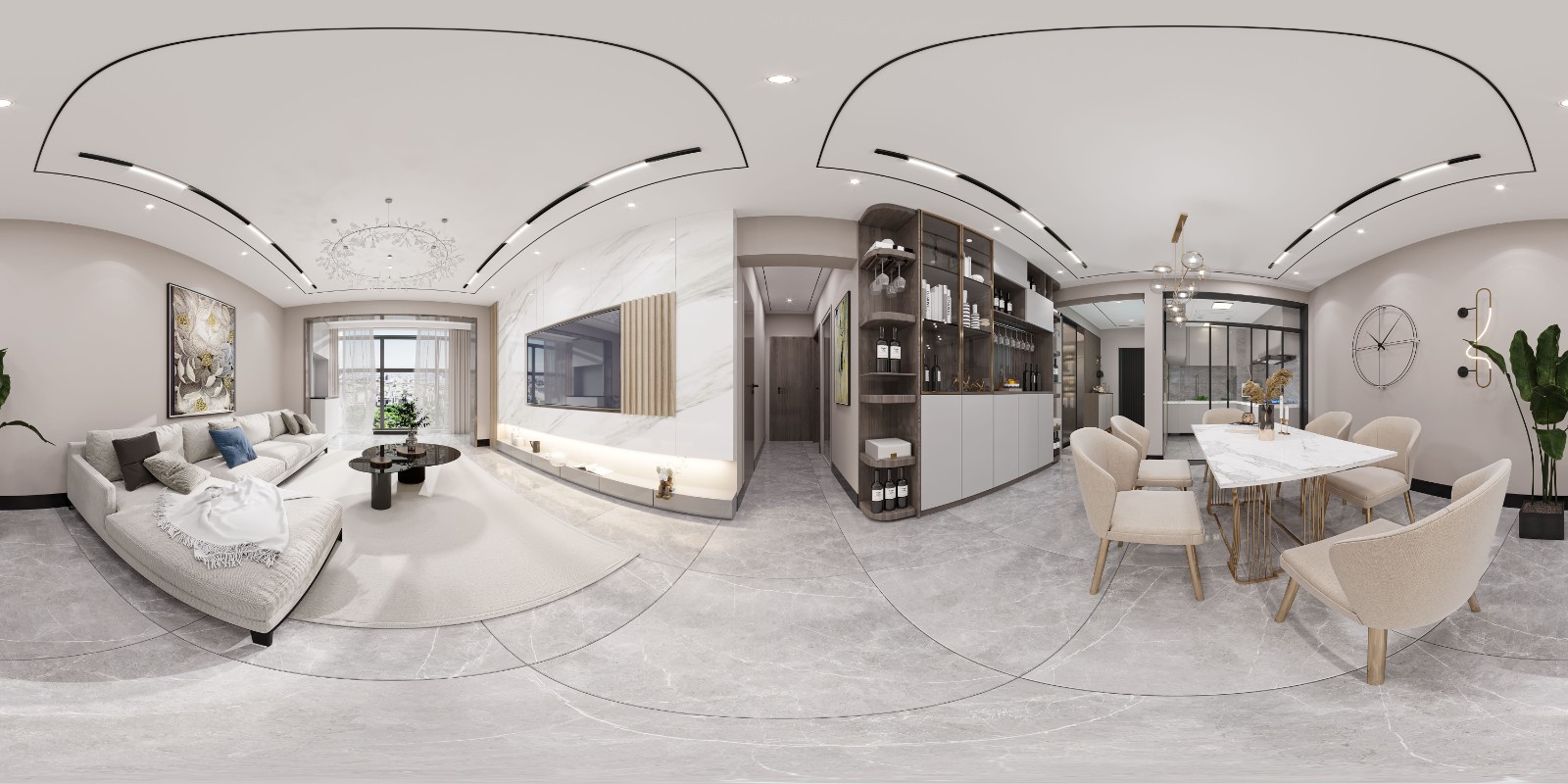 客餐厅采用双眼皮吊顶,磁吸轨道灯