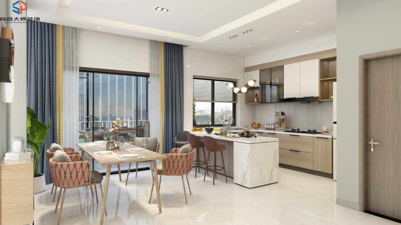 开放式的厨房,简洁的原木色为主,清新干净,有充足的活动空间
