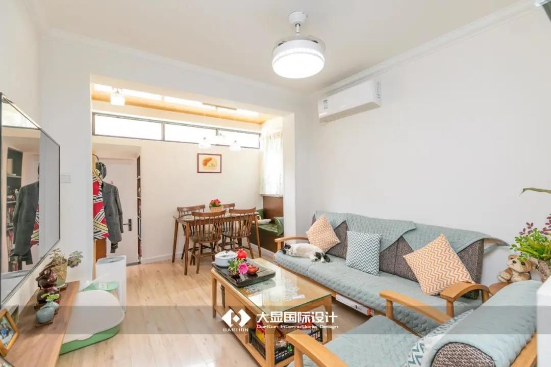 本来是两室居,天井那里做杂物间,女儿结婚后不经常回来,原来的房间不如改成客厅,阳台那里改成餐厅,之前的杂物间装修后来做女儿的房间,两位也不喜欢一些华丽的东西,所以设计师没有做装饰墙,而是用软装来装饰。