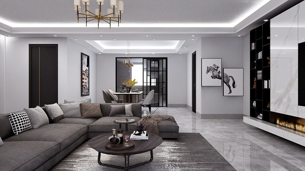 此方案装修是现代简约偏轻奢风的设计,住户要求空间通透明亮大气,卫生间要求要多个,因为平时家里多聚会,空间设计皆偏现代风。 住户为五口之家,平面布置上有客厅、餐厅、厨房、卫生间、主卧、次卧、儿童房
