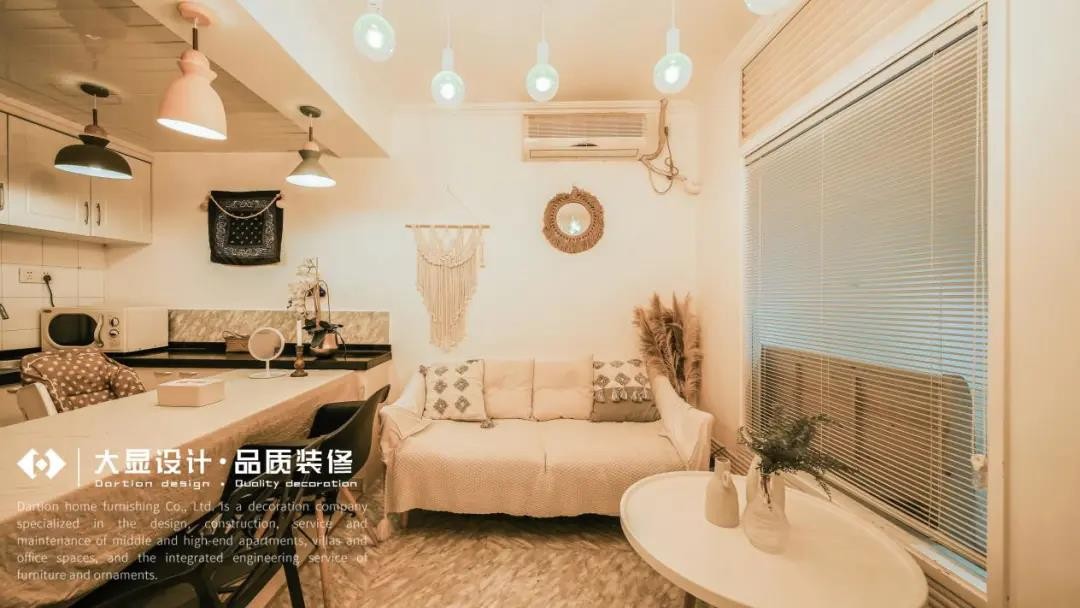 本案为单层公寓,房子狭长光线欠缺,且室内卧室不够,所以在墙体结构上都采用固定玻璃来增加采光,硬装上以白色为主,提亮室内空间感,软装配合棉麻质地,灯光使用温暖的黄色,创造简单而又温馨的感觉。