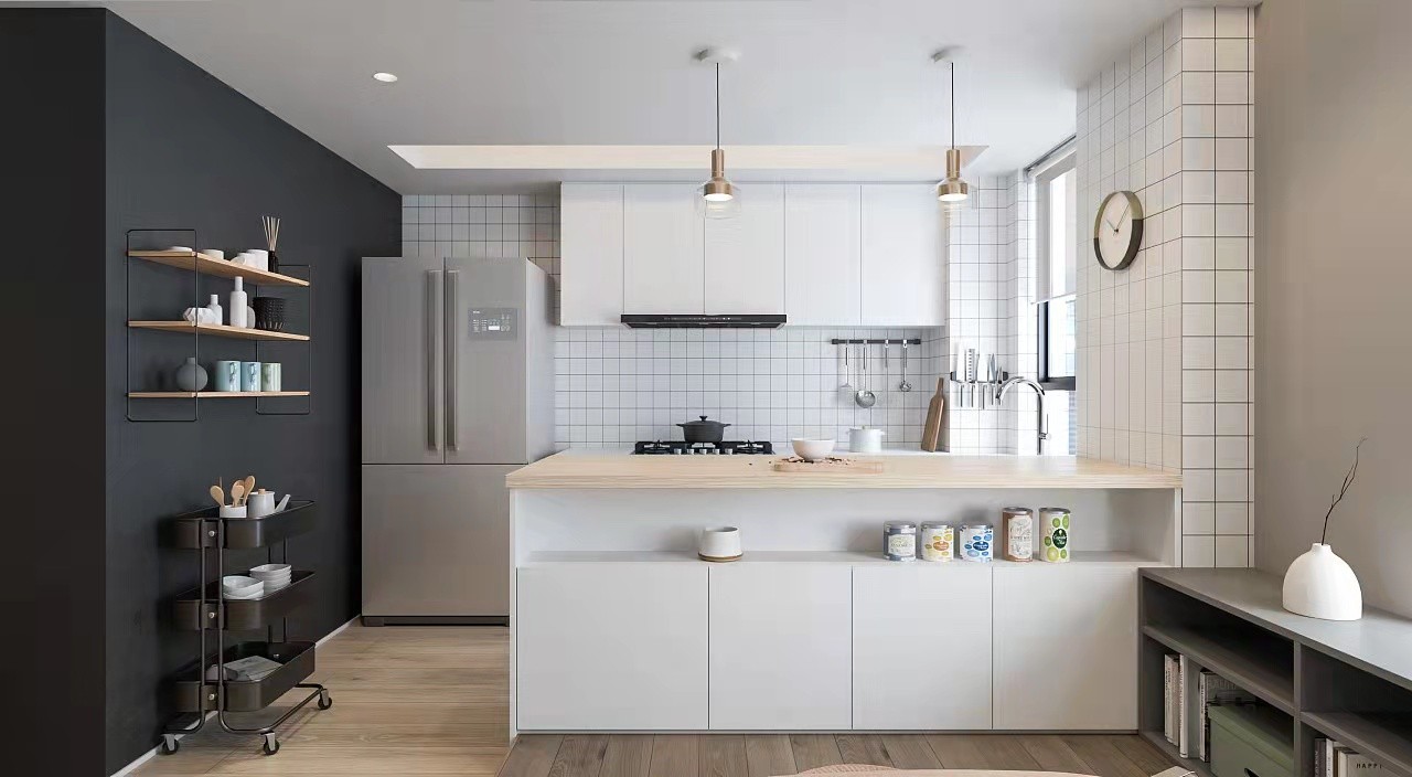 厨房带吧台,感受现代生活的小资情调,厨房里带有奶茶的气息。
