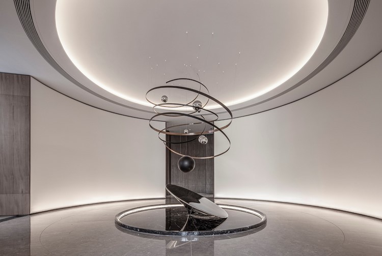 这个点位我们故意去掉了传统的“前厅”死板的设计,鼓励到来的每位客人可以直接跟随视觉进入接待区域,曲面或连续,或交叠,或独立地存在接待区域中,使人漫步其中感受到一种柔和舒适的包围感。