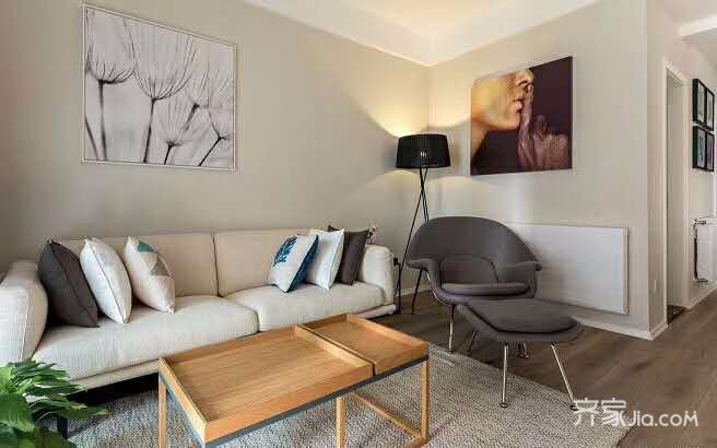 主色系为象牙白,灰色和原木色,温馨和谐