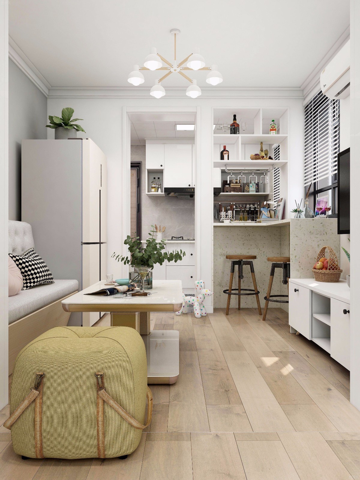 5平米的北欧小户型,用色较为简约、单一,整体而言,主要有黑、白、灰,大量的白色调与少量的灰色调和黑色调形成对比。