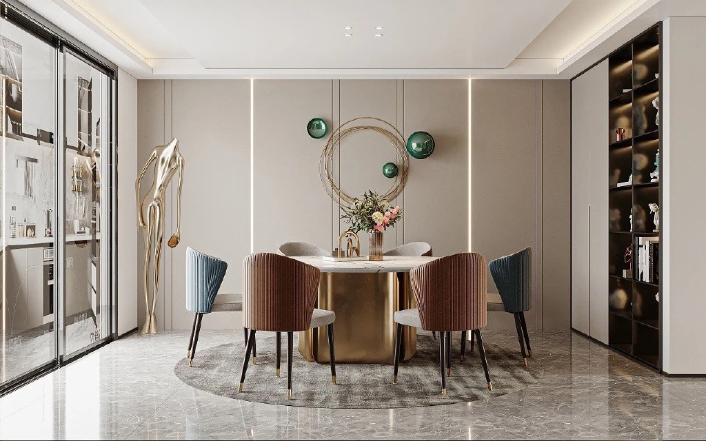 圆餐桌能增加家人间的亲密互动,便于情感的交流与沟通。