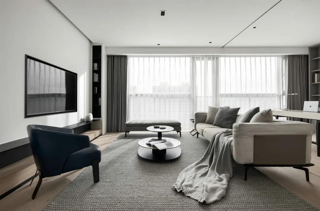 书房与客厅之间以通透玻璃相隔,既有效分隔,又不显疏离,在动与静之间,找到相对完美的平衡。