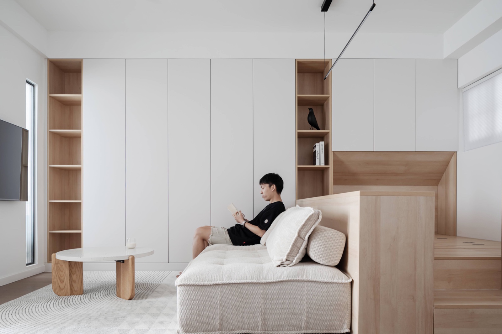 沙发后背定制一个榻榻米,可供临时偶尔休息。