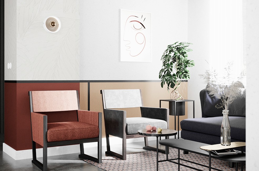 不用纯色而多使用中性色进行柔和过渡,即使用黑白灰营造强烈效果,也总有稳定空间的元素打破它的视觉膨胀感,比如用素色家具或中性色软装来压制。
