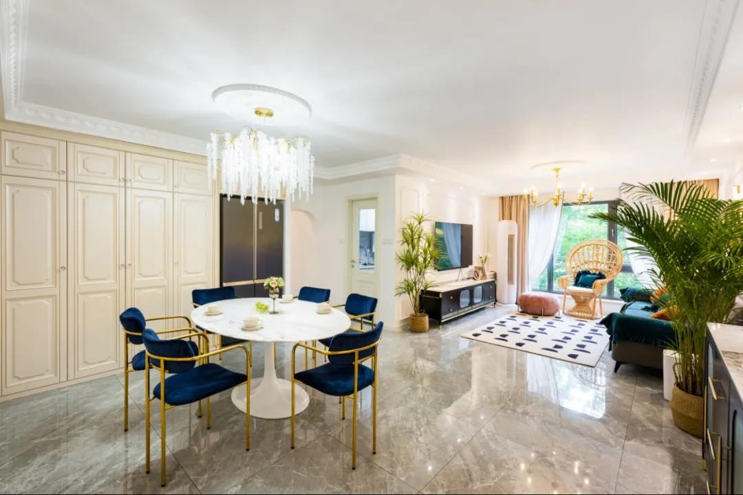 老房的客餐厅是一个整体,没有明显区隔和足够的储物空间,导致杂物堆放凌乱。这是业主装修的第二套房子,想打造一个以法式新古典风格为主调的精致“宫殿”,感受不一样的生活方式。