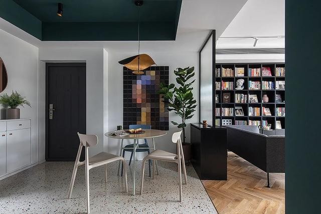 这套房子位于一楼,门外有一个小院子。室内原本是套三的格局,不过,有个房间很小,而他们家也没有留客房的必要,所以就直接去掉房门,将它打造成了一个与客厅连为一体的咖啡角,而客厅就打破常规化布局方式 ,设置成了他们更喜欢的家庭图书馆模式。另外就是将卫生间改成了干湿分离式的,其它区域几乎没动。随我一起去近距离欣赏一下吧。